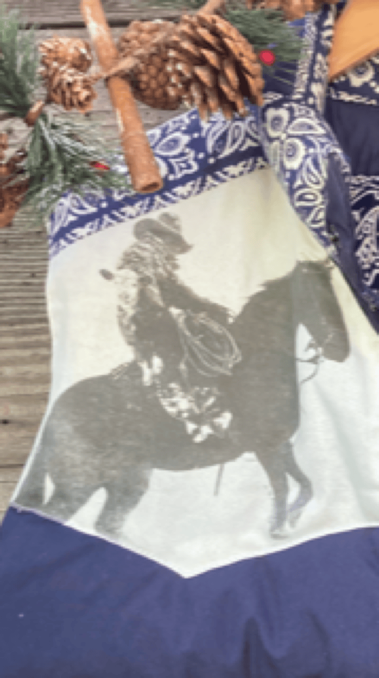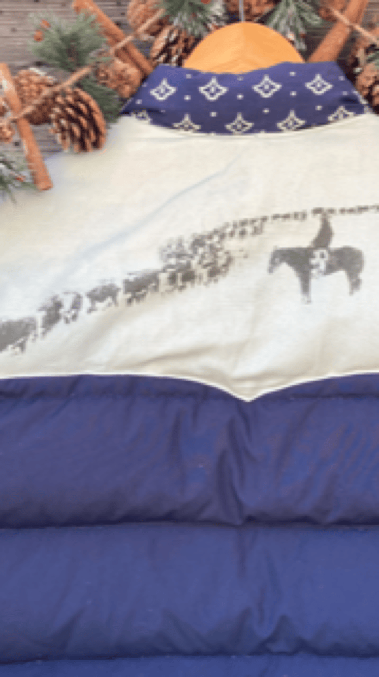 44 ” chest made in L.A vintage puffer vest with snowy cowboy scene.